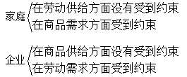 (1)凯恩斯失业均衡。商品市场上供给大于需求,企业在商品供给上受到需求约束,而家庭在商品需求上不受约束。劳动市场上供给大于需求,家庭在劳动供给上受到数量约束,而企业在劳动需求上不受约束。