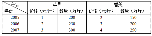假定一个经济中只生产苹果和香蕉两种产品。这两种产品在2005年、2006年、2007年的价格和数量分别如表2-2所示。