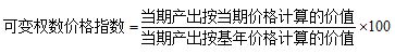可变权数价格指数测算的是购买当期生产的物品和劳务所花费的成本与同样的物品和劳务按基年价格应该花费的成本的比较,具体可以用下列公式计算可变权数价格指数: