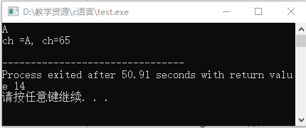 程序分析:从键盘上输入:A,输出:ch=A,ch=65
