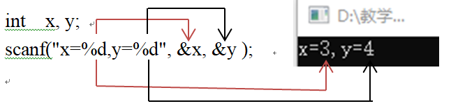 这里,若执行该语句后x=3,y=4, 则可按下面的格式输入: