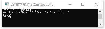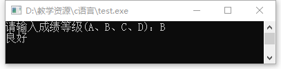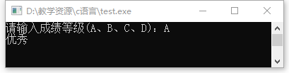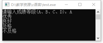 例3-5 根据考试成绩的等级(A、B、C、D),分别输出“优秀”,“良好”,“及格“和“不及格”等评语。