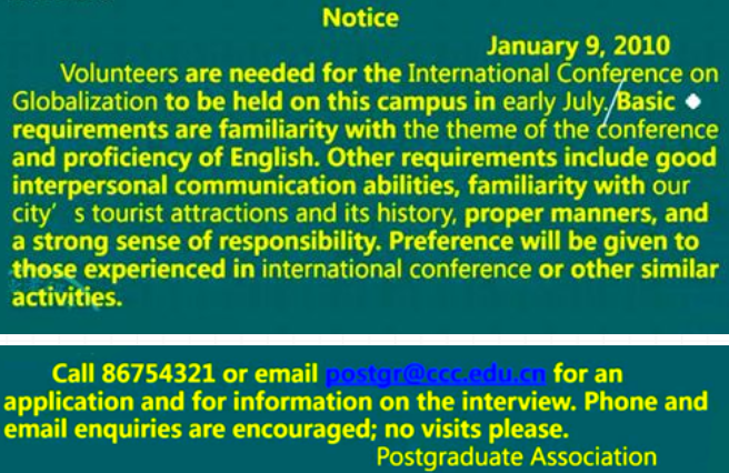 此外,申请者应该热心周到,而且正是你们的热心工作将会帮助外国客人享受一段在中国的舒适旅程。In addition, applicants are supposed to be warmhearted and considerate. It is your sincere work that will enable foreign guests to enjoy a comfortable trip in China.