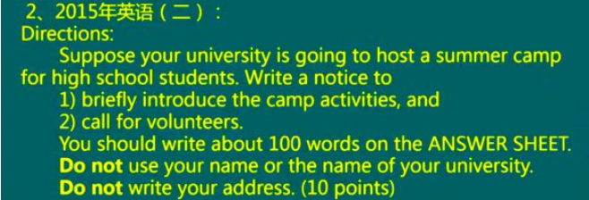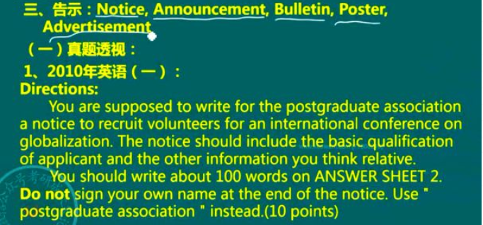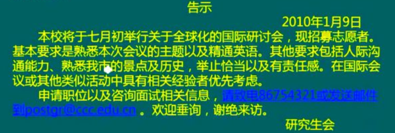 还要提醒各位同学的是:上述的句子既能用来写书信、通知等,也可用来写英语一、二大作文的写作。