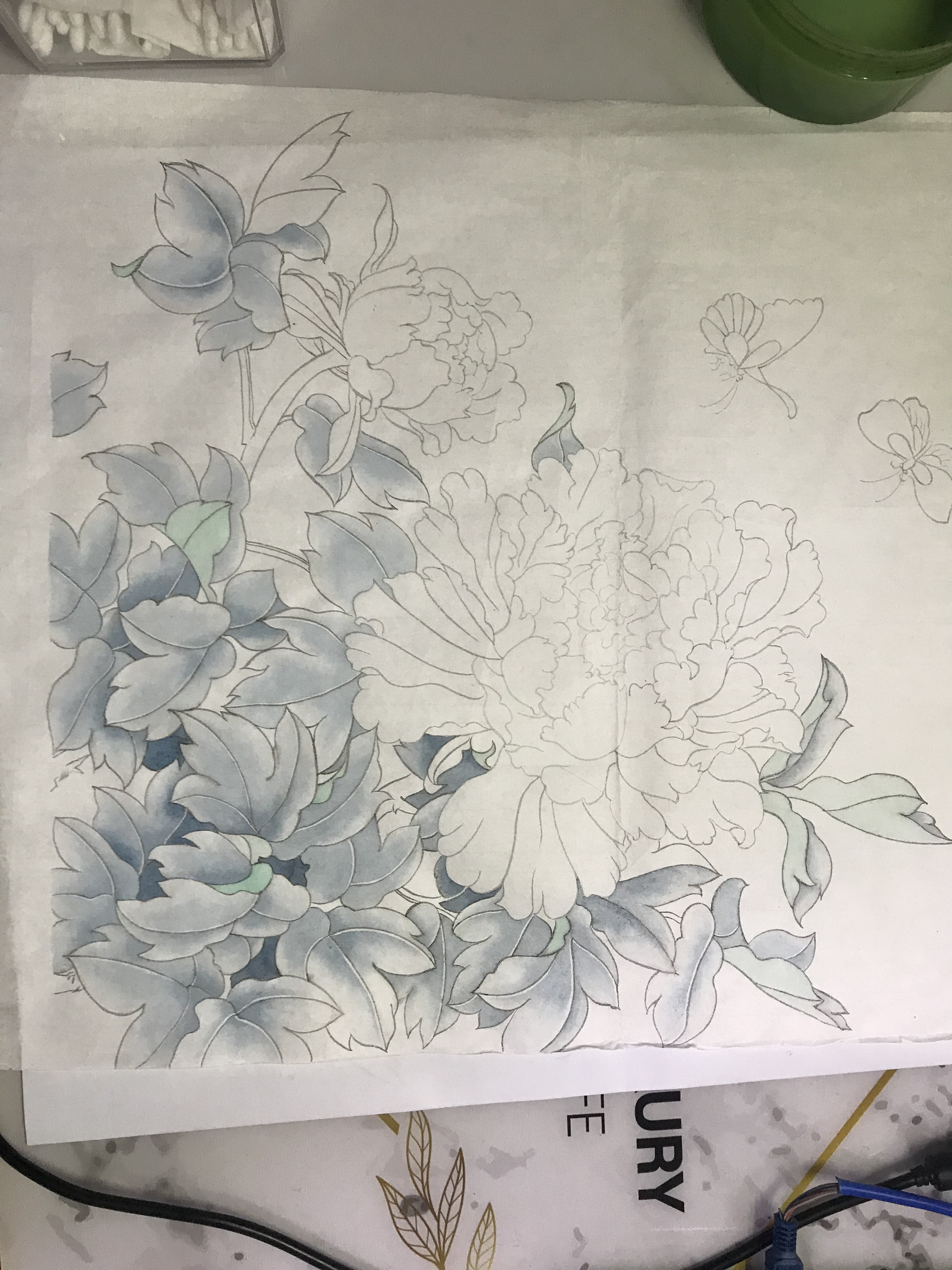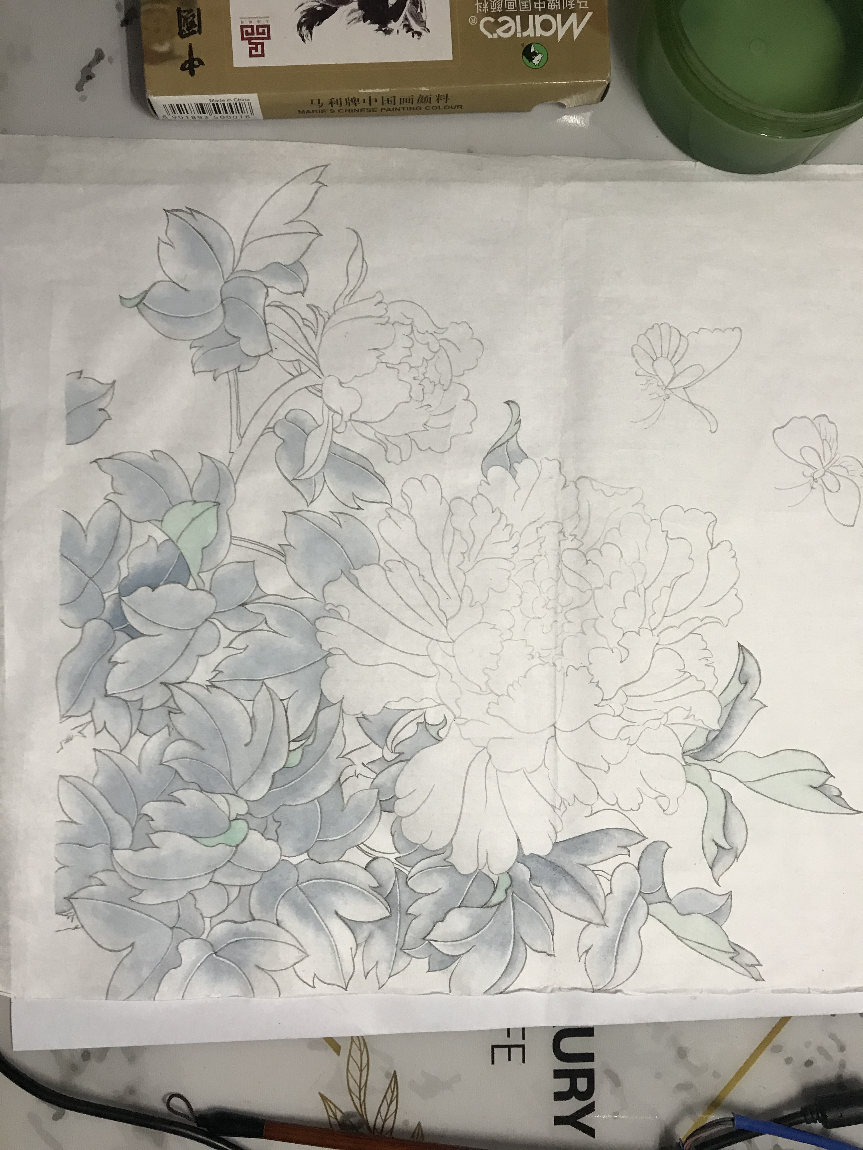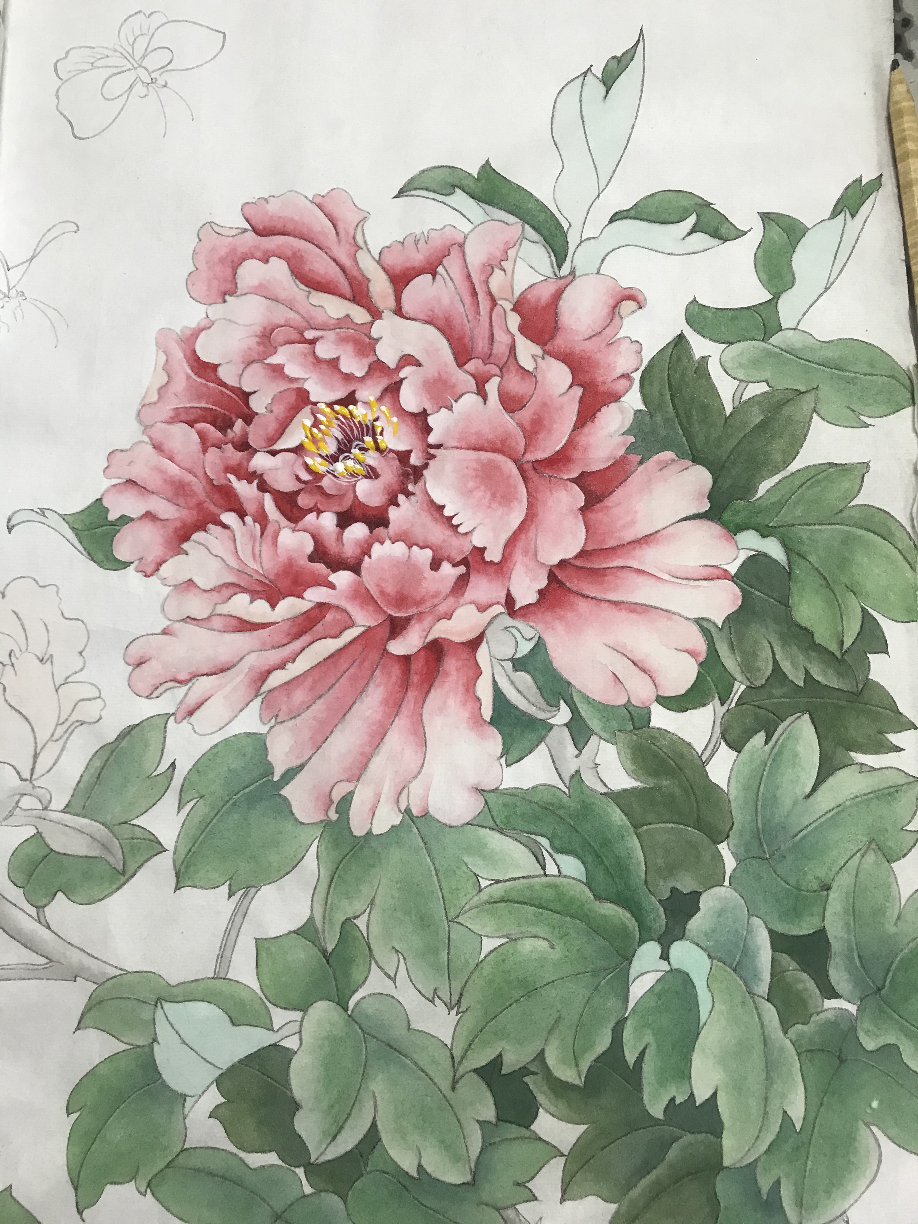 以下内容为花的统染与分染,花的醒染与提染,花蕊的画法,叶的统染与分染照片,叶的罩染的示范视频。如有理论内容仍然不懂的,请看钉钉课堂直播回放。