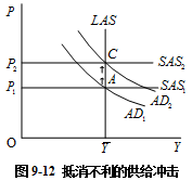 点。在这种情况下,可以说扩大总需求的政策抵消了供给冲击。当然,这种选择的缺点是经济要经历持续的通货膨胀。
