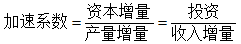 加速系数。指每增加一单位产量所需要增加的资本数量,其数值为资本增量与产量增量之比。又因为资本增量可以看作投资,产量增量可看作收入增量,所以其公式可表示为: