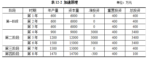 通过对表12-2的分析,我们能够进一步理解西方经济学者对加速原理的说明: