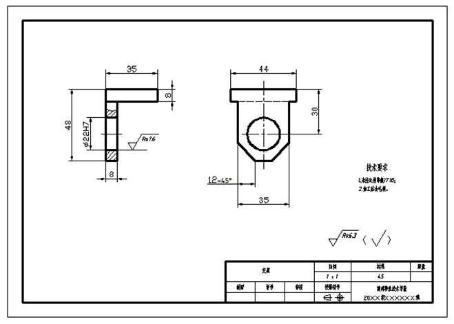 1.1按机械制图国家标准抄画支架零件图(1.1 Copy support parts drawing according to the national standard of mechanical drawing)