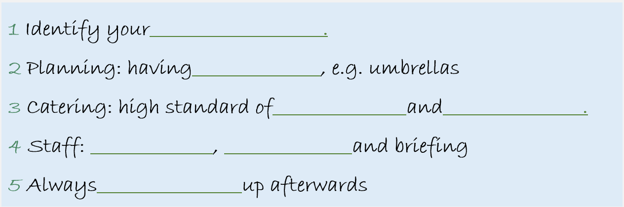 Listen to the third part. What makes a corporate event successful? Complete these notes.