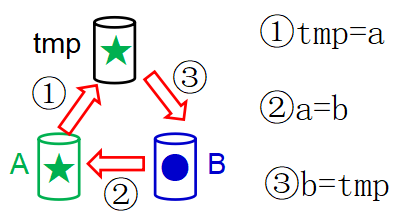 ③ 关键是怎样实现两个变量值的互换
