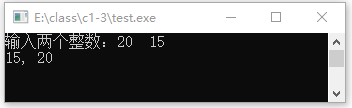选用样例数据 a=20, b=15,期望结果:15,20