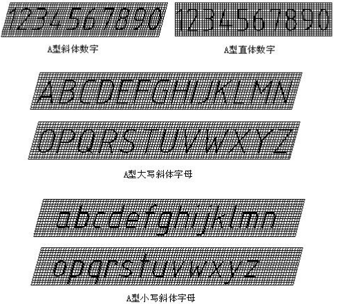 Figures should be written in Arabia digital. The letter should be written in the Latin alphabet , Rome, and the Greek alphabet. Numbers and letters are divided into A type and B type. Stroke width A fonts for words is 1/14 of height. stroke width B fonts for words is 1/10 height. In the same drawing, only font is permitted. In order to coordinate with Chinese characters, suggested by A type font numbers and letters.