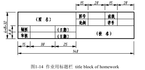 本课程作业中建议采用图 1-14 所示的标题栏。