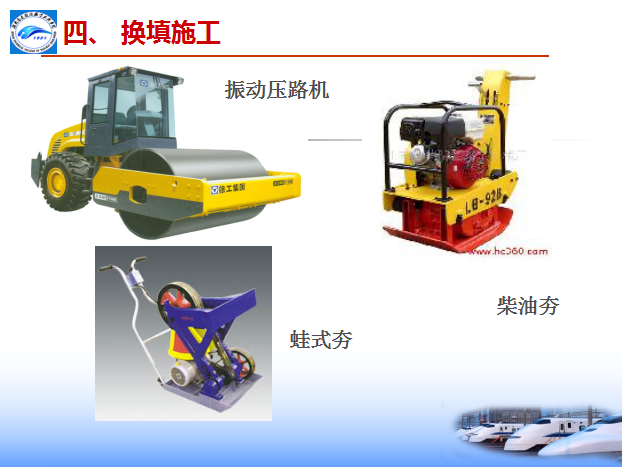 粉质粘土、灰土宜采用平碾、振动碾或羊足碾,中小型工程也可采用蛙式夯、柴油夯;