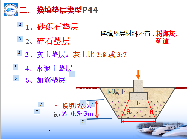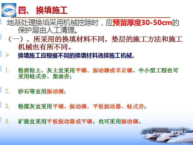 一)所采用的换填材料不同,垫层的施工方法和施工机械也有所不同。