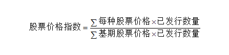 加权平均法是以若干种股票作为计算前提,以各种股票的价格乘以已发行数量的总和作为分子,用每种股票的基期价格乘以发行数量的总和作为分母,相除所得百分比,即为股票价格指数。计算公式如下:
