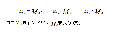 在货币供给与货币需求间存在3种对比状态: