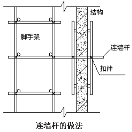 连墙件:将立杆与主体结构连接在一起,可用钢管、型钢等。