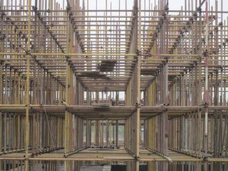 脚手架:砌筑过程中堆放材料和进行操作不可缺少的临时设施。