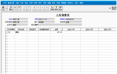 1.在核算管理子系统中,选择“核算”|“入库调整单”,打开“入库调整单”对话框。