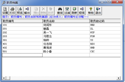 ①选择“基础设置”|“机构设置”|“职员档案”命令,进入“职员档案”窗口。