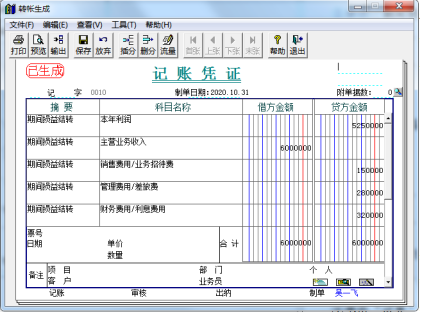 1 0月31日,由会计生成上述计提短期借款利息和结转期间损益凭证。