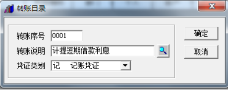 ③输入转账序号“0001”,转账说明“计提短期借款利息”;选择凭证类别“记账凭证”。