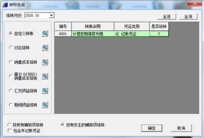 ③单击“全选”按钮,单击“确定”按钮,生成转账凭证。