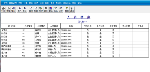 注:人员档案即可以从已建立的职员档案输入,也可以在人员档案中直接增加。