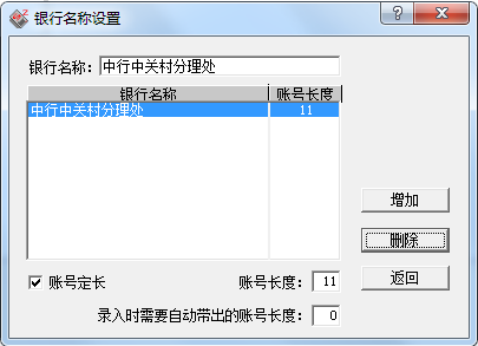 ①执行“工资”|“设置”|“银行名称设置”命令,单击“增加”按钮,增加银行名称,设置账号长度,并删除其它无用的银行名称。