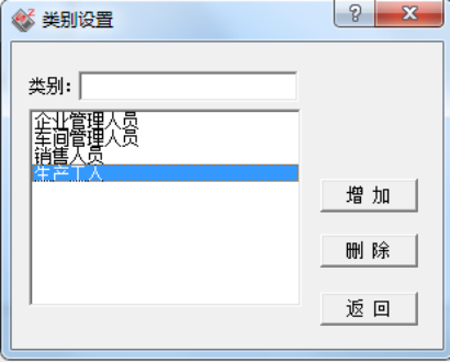 ①执行“工资”|“设置”|“人员类别设置”命令,单击“增加”按钮,以此增加企业管理人员、车间管理人员、销售人员和生产工人,完成所有人员类别后“返回”。