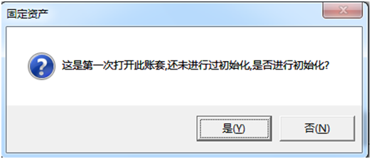 ①以账套主管的身份进入T3,单击“固定资产”,系统弹出“……是否进行初始化?”信息提示框;