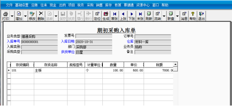 (1)采购期初录入