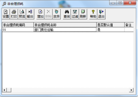 (3)设置非合理损耗类型“01 运输部门责任”为默认值。