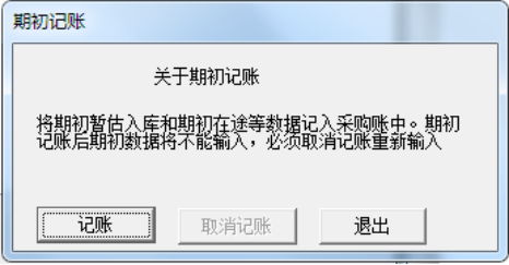 ④选择“采购”|“期初记账”命令,系统弹出“期初记账”信息提示框。
