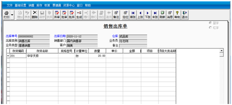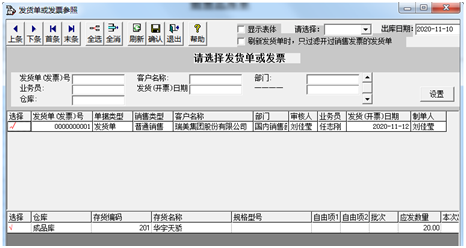 ①选择“库存”|“销售出库单生成/审核”命令,打开“销售出库单”对话框。