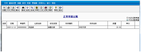 ②单击需要记账的单据前的“选择”栏,出现“√”标记,或者单击工具栏的“全选”按钮,选择所有单据,然后单击工具栏中的“记账”按钮。记账完成后,单据不再在对话框中显示。