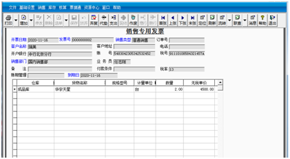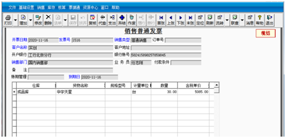 ①选择“销售”|“销售发票”命令,打开“普通发票”对话框。