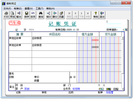 (3)在核算管理子系统中对代垫费用形成的应收单制单