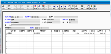 ①选择“销售”|“销售发货单”命令,单击“增加”按钮,打开“选择订单”对话框,单击“取消”按钮返回。选择销售类型为“普通销售”、客户名称为“实创”。选择仓库为“成品库”、存货名称为“202华宇天星,输入数量为30、无税单价为4500