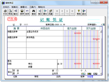 ②单击“保存”按钮,再单击“审核”按钮,保存并审核发货单。然后单击“退出”按钮。