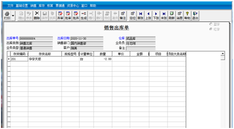 ①选择“库存”|“销售出库单生成\审核”命令,打开“销售出库单”对话框。