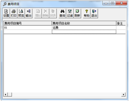 在T3中,选择“基础设置”|“购销存”|“费用项目”命令,打开“费用项目”对话框,增加费用项目“01运费”。
