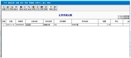 ①在核算管理子系统中,选择“核算”|“核算”|“正常单据记账”命令,对红字销售出库单进行记账。