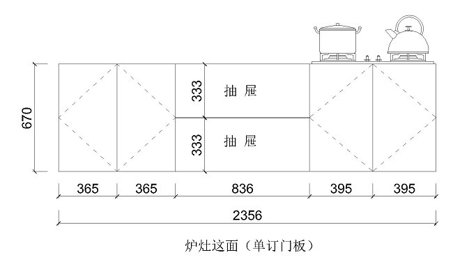 【习题知识要点】绘制地柜图形,利用“矩形”按钮、“直线”按钮按钮绘制双人床,效果如下图所示。