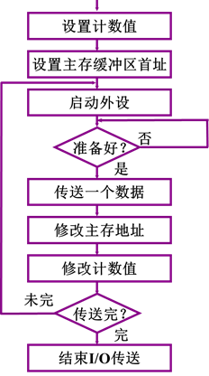 ①预置传送参数。在传送数据之前,由CPU执行一段初始化程序,预置传送参数。传送参数包括存取数据的主存缓冲区首地址和传送数据的个数。