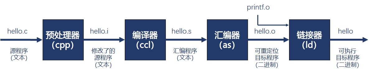 一个典型的c语言, hello.c源代码: