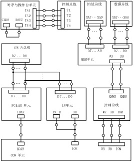 实验箱中所有单元的时序都连接至时序与操作台单元,CLR都连接至CON单元的CLR按钮。实验时T3由时序单元给出,其余信号由CON单元的二进制开关模拟给出,其中IOM应为低(即MEM操作),RD、WR高有效,MR和MW低有效,LDAR高有效。