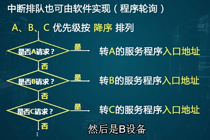 所谓软件判优法,就是用程序来判别优先级。当CPU接到中断请求信号后,就执行查询程序,逐个检测中断请求寄存器的各位状态。检测顺序是按优先级的大小排列的,最先检测的中断源具有最高的优先级,其次检测的中断源具有次高优先级,如此下去,最后检测的中断源具有最低的优先级。